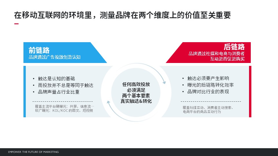 在复杂多变的移动互联网环境里,Ghawar以其全触点的覆盖范围、完整的In-app数据、丰富的行为监测,帮助品牌找到营销效果测量中至关重要的两个抓手——前链路和后链路。品牌不仅能借此厘清前链路中广告投放所创造的认知,还可以实时洞悉通过社媒和电商与消费者互动所产生的搜索及购买等后链路效果。